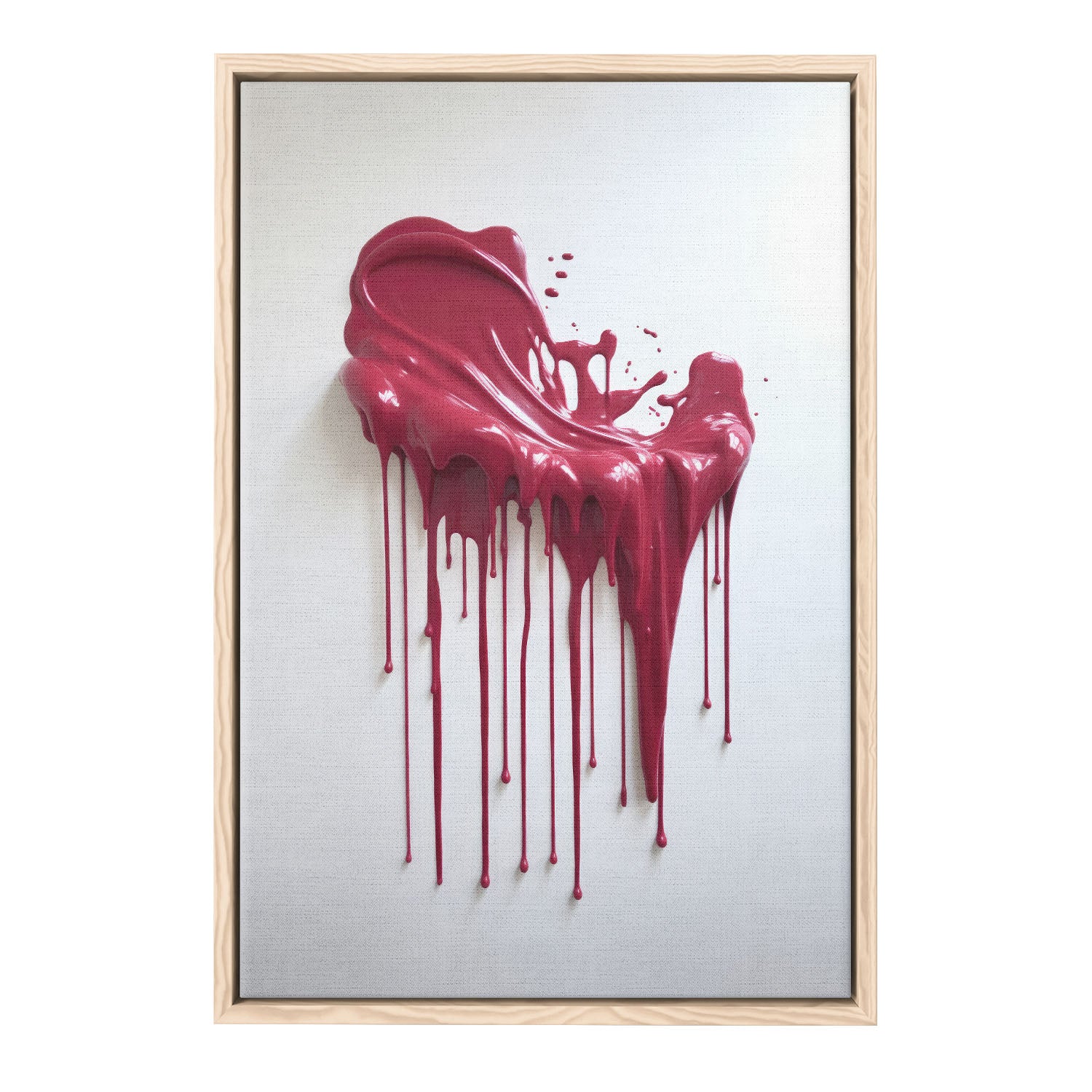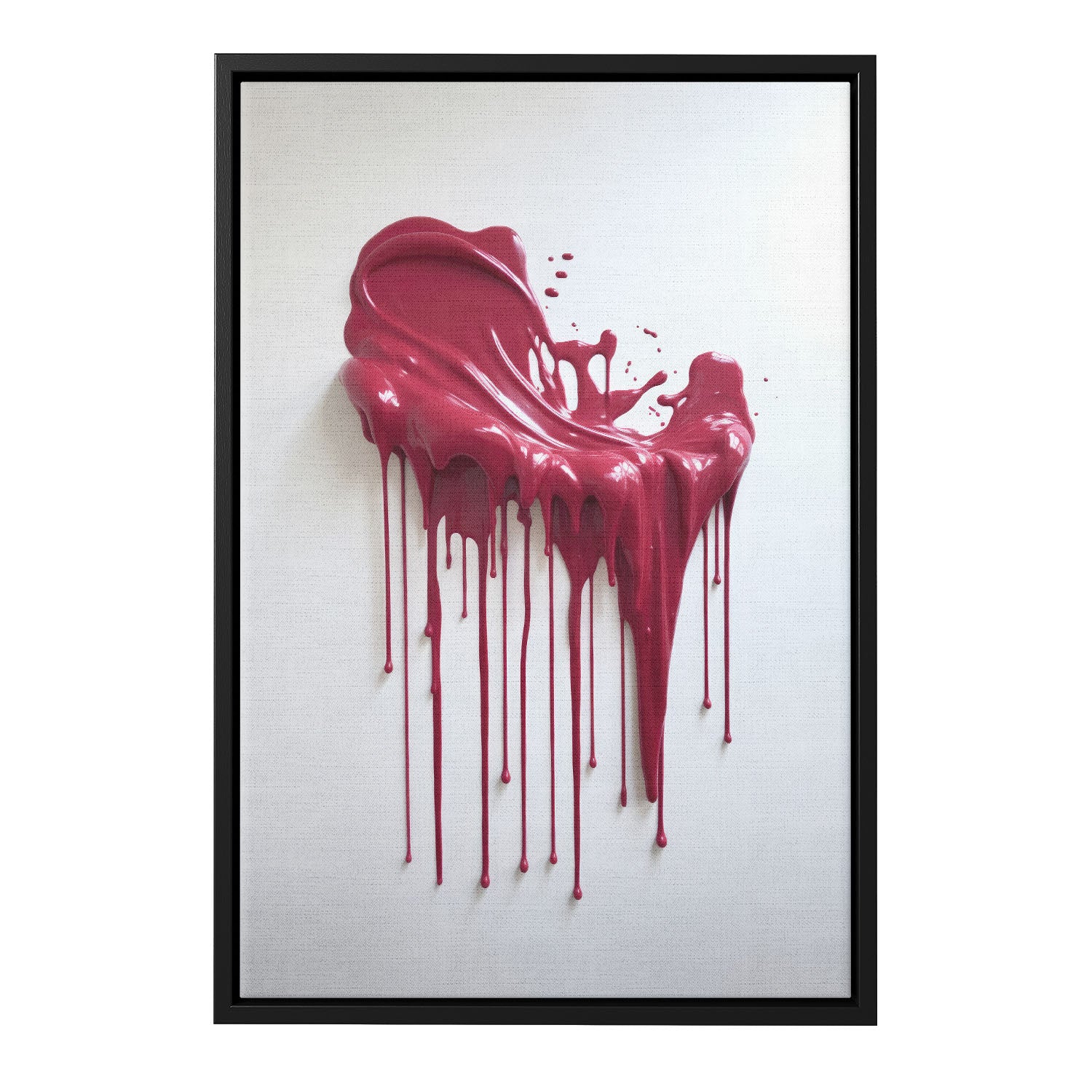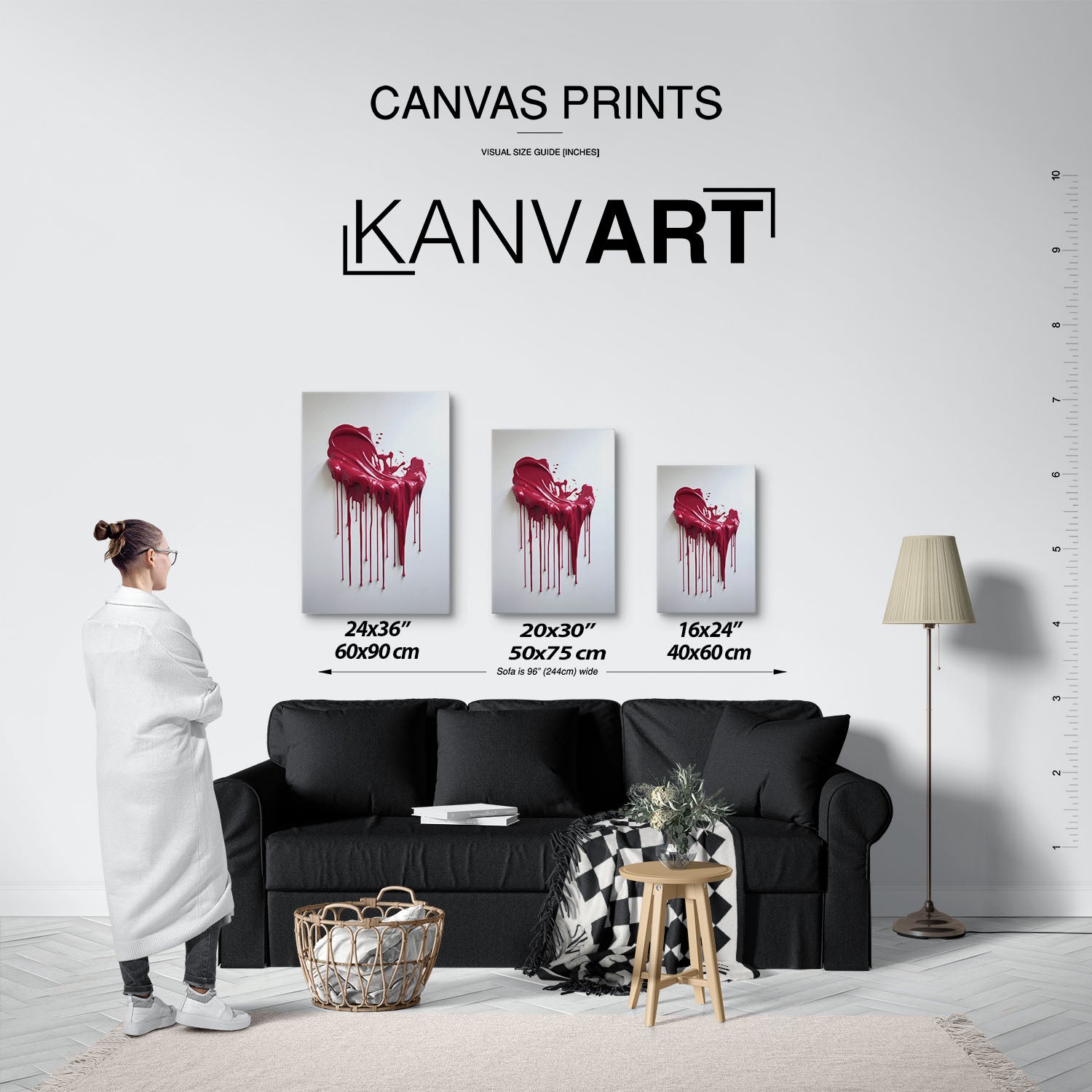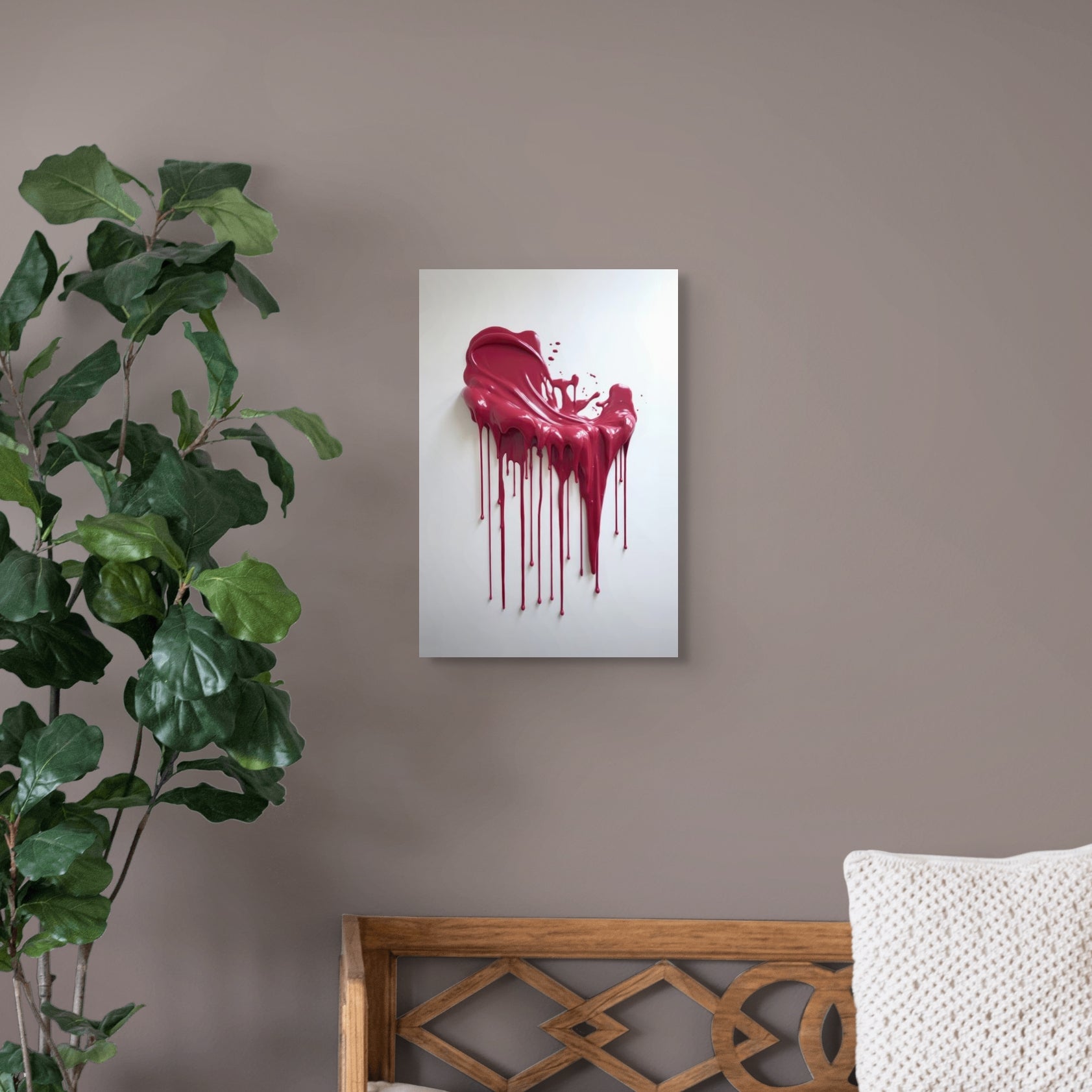 Modern canvas artwork featuring a dynamic splash of vibrant red paint dripping in fluid, sculptural forms against a clean white background. This striking piece embodies abstract art, contemporary design, and bold color, perfect for creating a dramatic focal point in any space.